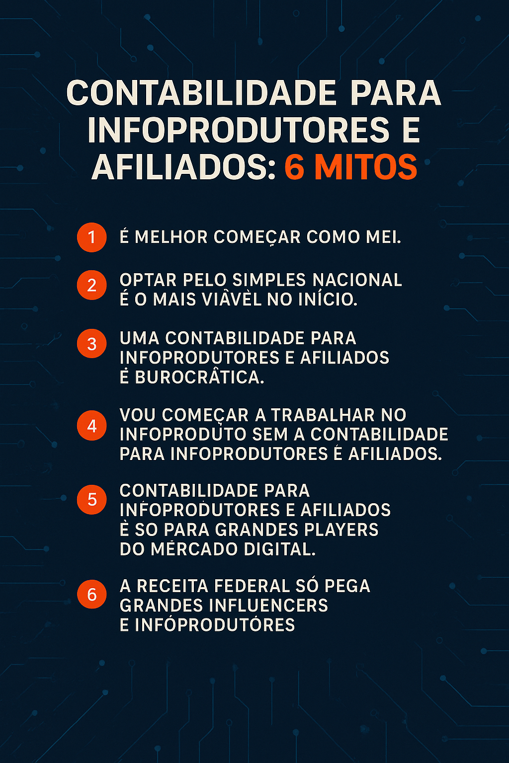 Desvende os 6 mitos da contabilidade para infoprodutores e afiliados! Simplifique seu planejamento tributário, reduza impostos e lucre mais. Contabilidade especializada para você.